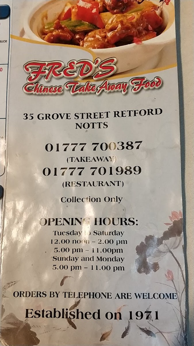 Welcome to Fred's Cantonese Restaurant, a culinary gem located at 35 Grove St, Retford. Here, you’ll discover a menu brimming with authentic Cantonese dishes that cater to every palate. Each visit promises a delightful experience, underscored by exceptional service. Guests rave about the friendly staff who go the extra mile to ensure meal satisfaction, as echoed in reviews highlighting accommodating policy adjustments without extra charges.